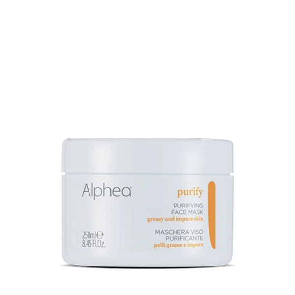 ALPHEA PURIFY MASCHERA VISO PURIFICANTE 250 ML: Una Maschera Viso ideale per pelli soggette ad un’eccessiva secrezione sebacea. Ricca di estratti vegetali dermopurificanti e astringenti tra cui Salvia, Hamamelis e Propoli, purifica efficacemente la pelle impura. La formula arricchita con Alghe Marine e della Vitamina E assorbe e riequilibra il sebo in eccesso, liberando i pori dalle imperfezioni, riducendo le impurità che causano una pelle grassa, per un incarnato fresco, purificato e sano. Adatto ad un uso professionale.