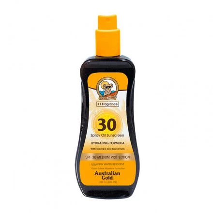 AUSTRALIAN GOLD SPRAY OIL HYDRATING FORMULA CARROT SPF30 237 ML : un olio solare che idrata e protegge la pelle riducendo il rischio di eritemi solari causati dai raggi nocivi del sole. Contiene un medio fattore di protezione. Senza Parabeni, senza PABA, senza Alcol, senza Glutine.