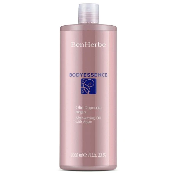 BENHERBE BODYESSENCE OLIO DOPOCERA ARGAN 1000 ML: Un Olio dopocera formulato senza paraffina dalla texture ultra vellutata e altamente detergente che elimina facilmente i residui di cera post-epilatori. La formula arricchita con Olio di Argan, Olio di Soia Selvatica, Olio di Girasole e Vitamina E garantisce un’azione nutritiva ed emolliente, lasciando la pelle morbida ed estremamente elastica. E’ un prodotto indispensabile nel trattamento di epilazione con ceretta. Adatto ad un uso professionale.