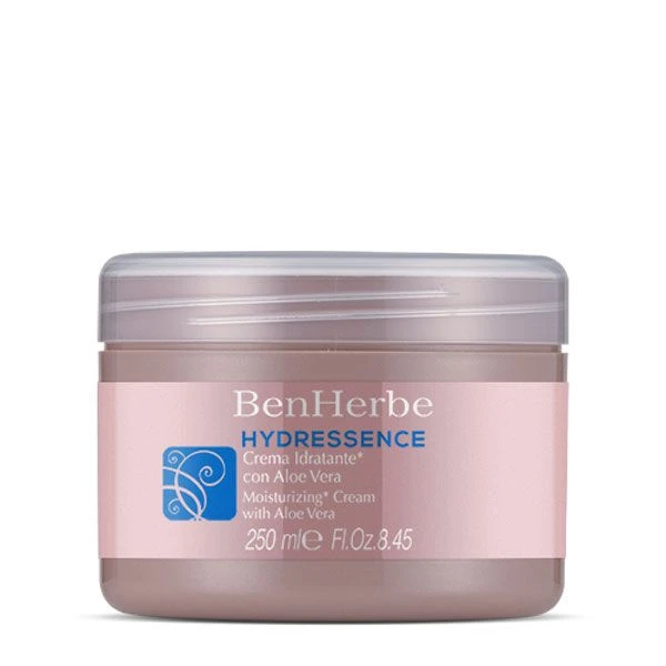 BENHERBE HYDRESSENCE CREMA IDRATANTE CON ALOE VERA 250 ML: Una crema ideale per pelli normali e secche, studiata per idratare gli strati superiori dell’epidermide. Grazie alla combinazione dell’Aloe Vera e del Burro di Karitè presenti in formula, è in grado di rigenerare e lenire la pelle anche più secca e sensibile, stimolando la naturale riserva d’idratazione.Lascia la cute morbida e liscia. Può essereutilizzata come base maquillage. Adatta ad un uso professionale